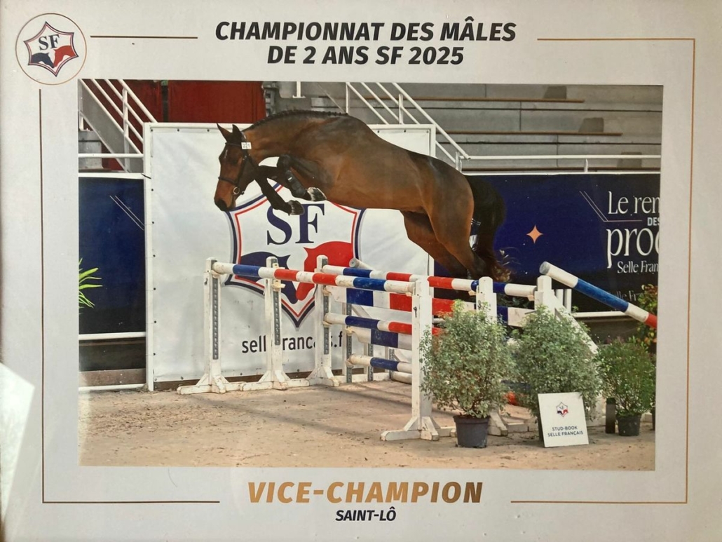Vice champion de France des 2 ans mâles, des moyens au saut hors du commun avec une note de 19 aux moyens et une note globale de 17.47.